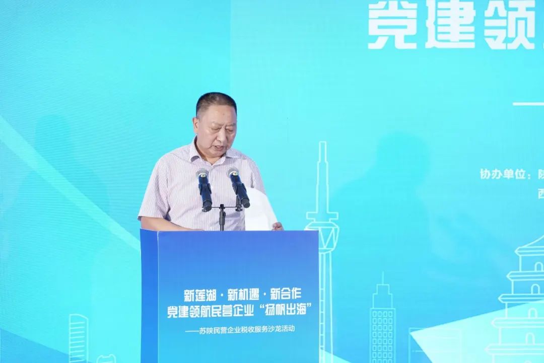 8月29日上午,以新蓮湖·新機(jī)遇·新合作為主題的蘇陜民營(yíng)企業(yè)稅收服務(wù)“沙龍”活動(dòng)在蓮湖數(shù)字出海產(chǎn)業(yè)園舉辦。陜西省工商聯(lián)二級(jí)巡視員張志敏出席并講話、西安市稅務(wù)局黨委委員、總審計(jì)師王健致歡迎詞。蘇陜東西部合作發(fā)展促進(jìn)會(huì)黨委書(shū)記、主席劉浩春出席并講話。政華國(guó)際會(huì)展、太平洋西北建設(shè)、蘇寧易購(gòu)、陜西省建筑設(shè)計(jì)院、江蘇明浩集團(tuán)、中南建筑西北公司等30余家會(huì)員企業(yè)負(fù)責(zé)人參加活動(dòng)。